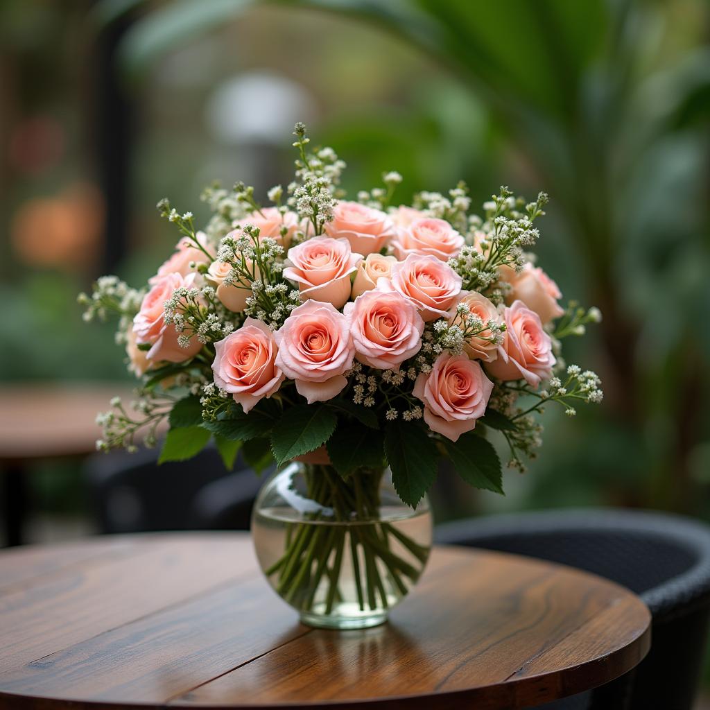 One of the striking qualities of the Hannah arrangement is its versatility. Whether placed on a dining table, a coffee table, or as part of a special event decor, these pink flowers seamlessly blend into any setting. The combination of textures and shades of pink creates a visually appealing composition that is sure to catch the eye. Each flower is carefully selected to ensure longevity and maintains its beauty, offering a delightful experience that lasts.