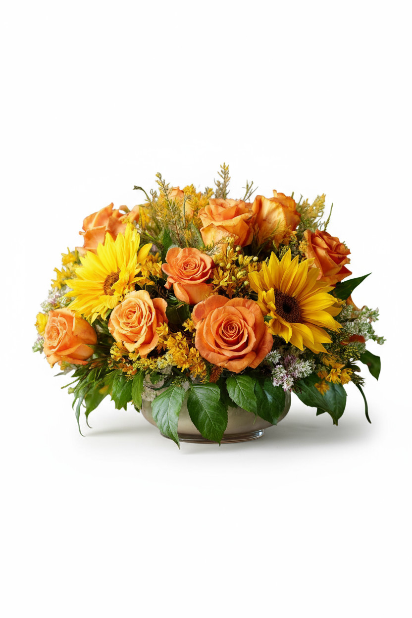 Our “Autumn Glow” arrangement features only the freshest, sun-kissed blooms, handpicked to ensure unmatched vibrancy and longevity. The bouquet is artfully assembled to include rich, textured elements that highlight the essence of fall, such as warm orange, deep red, and golden yellow tones. Each flower is carefully chosen and arranged to create a harmonious balance, resulting in a centerpiece that is as stunning as it is versatile.