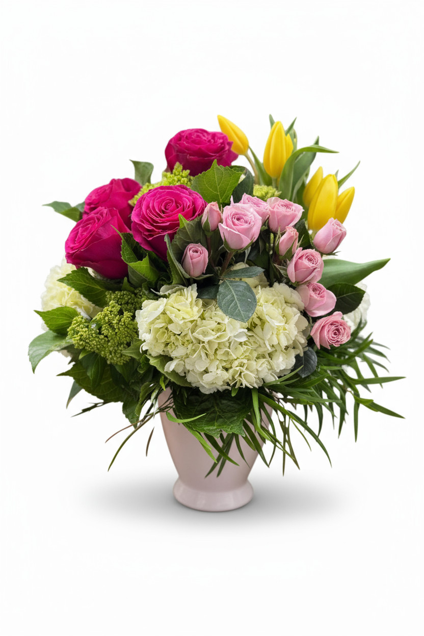 The Bird Song arrangement features high-quality blooms that are hand-picked for their freshness and beauty. Each flower is thoughtfully arranged to create a harmonious balance of colors and textures. The radiant pink and cheerful yellow flowers not only symbolize love and friendship but also bring an uplifting energy to your surroundings. This arrangement is meticulously put together by skilled florists, ensuring that it lasts longer while maintaining its stunning appearance.