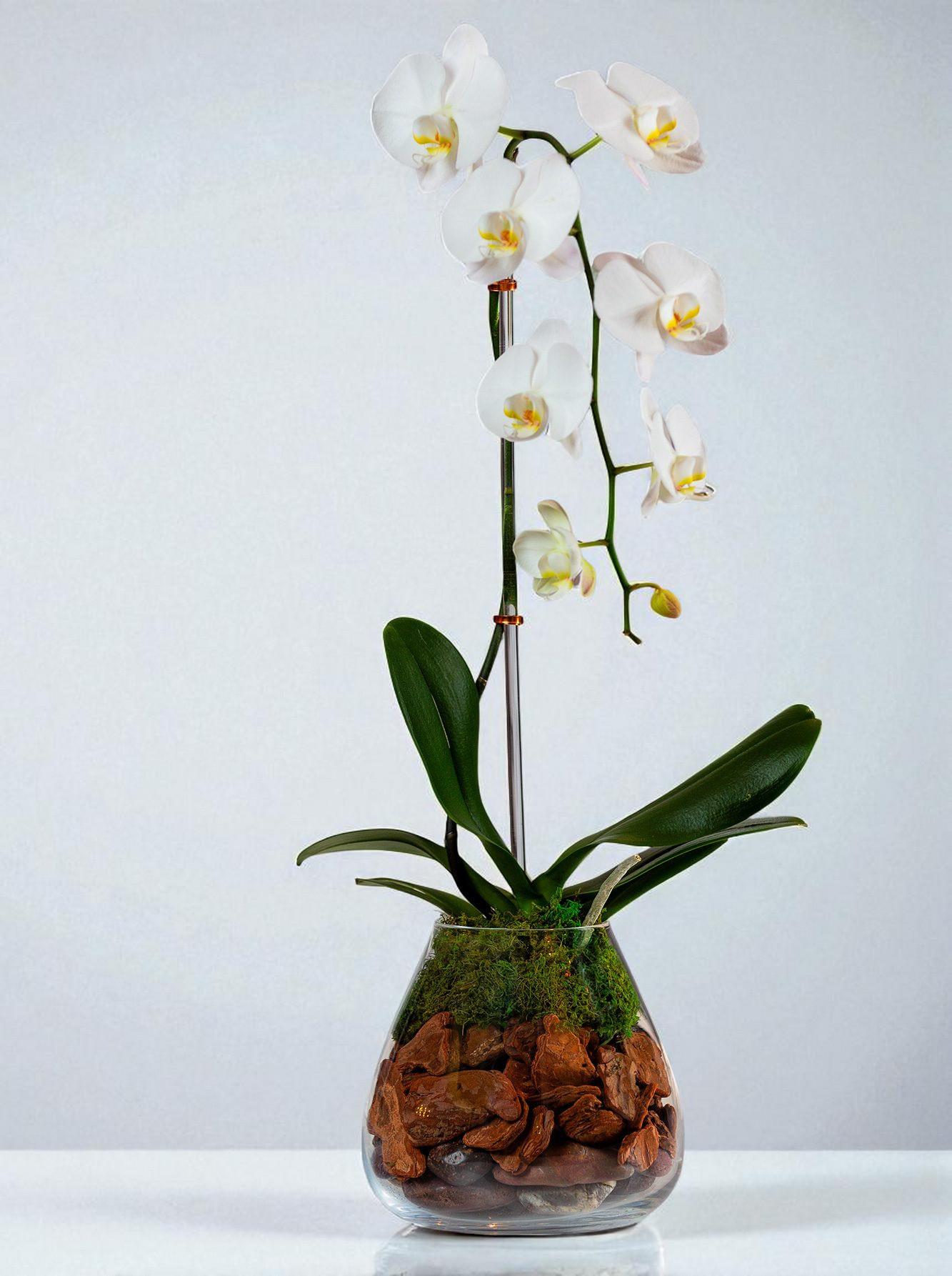 Bring home the elegance and grace of the Cascading White Orchid, and let its timeless beauty elevate your surroundings. Whether you’re decorating your home or looking for the perfect gift, this pure white phalaenopsis orchid is an exquisite choice. Don’t miss out on the opportunity to own a piece of nature’s artistry that will enhance your space and create lasting impressions.