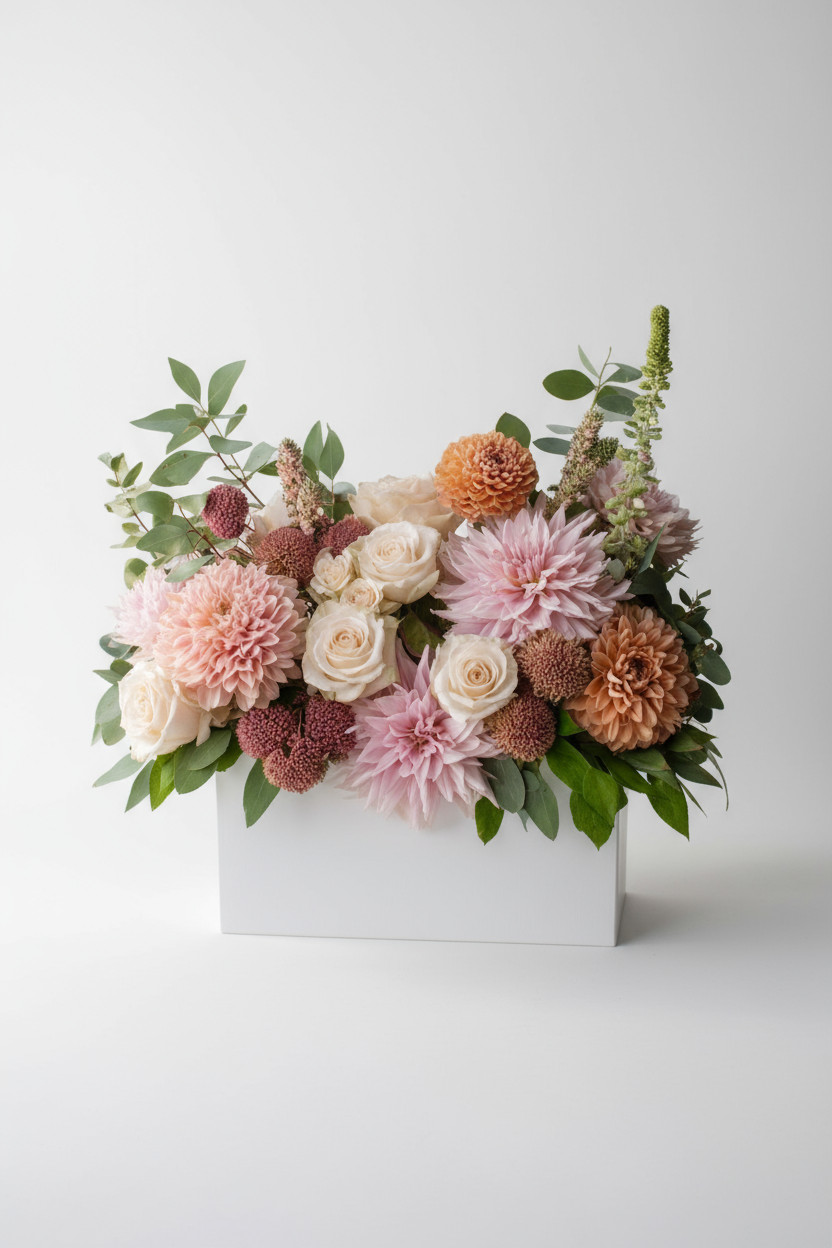 If you’re looking to bring serenity and elegance to any space, this stunning floral arrangement is the perfect choice. A gift that whispers love, grace, and timeless beauty, it provides the ideal touch for any special moment or celebration. Whether you’re commemorating a wedding, honoring an anniversary, hosting a baby shower, or simply looking to elevate your home or office décor, this arrangement captures the serene charm of a cottage garden and invites nature’s calm indoors.
