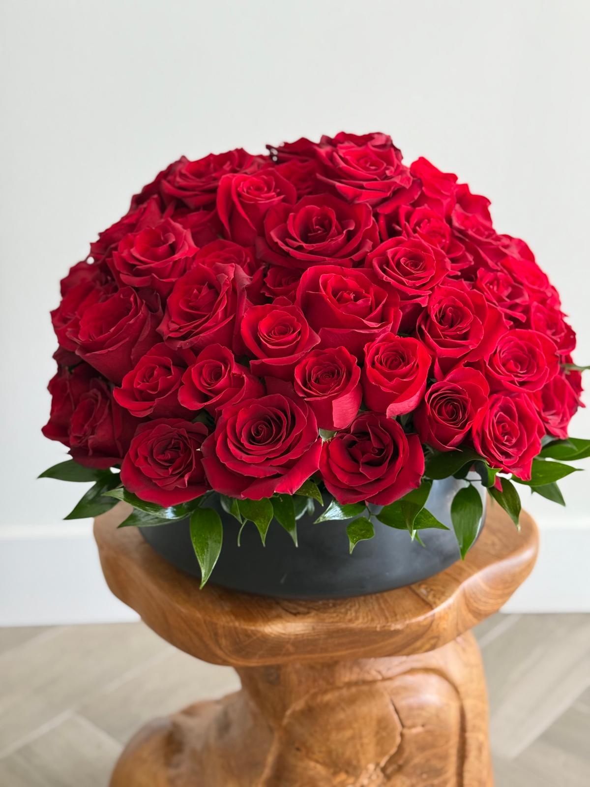 Each rose in our 75 red roses arrangement is hand-selected for its vibrant color and freshness. Expert florists arrange these beautiful blooms to create a stunning centerpiece that brightens up any space. Whether presented in a stylish vase or as a standalone bouquet, this arrangement adds a touch of elegance to your celebrations.