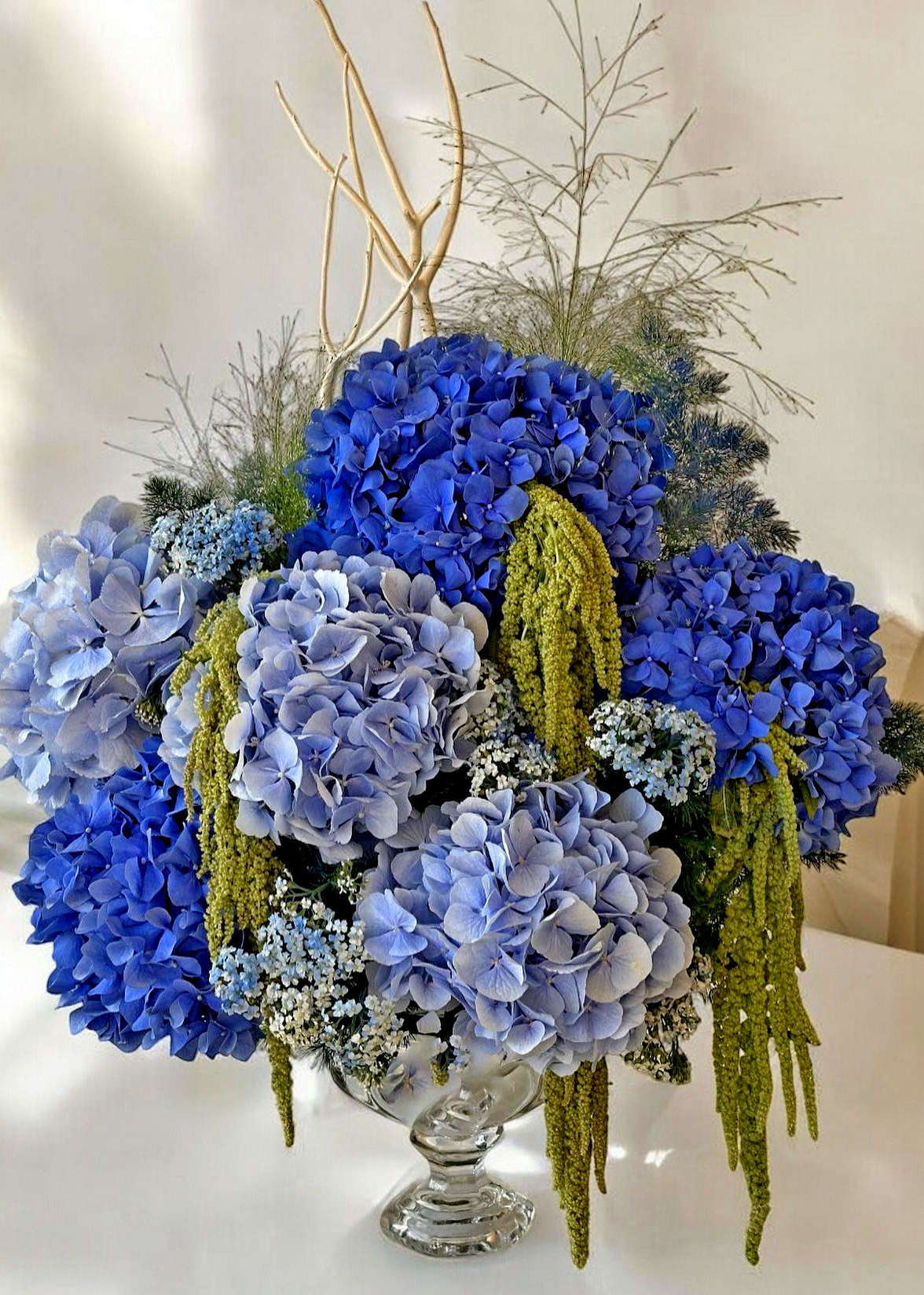This lush blue hydrangeas arrangement complements various settings, from weddings to casual home decor. Versatility makes it an ideal choice to elevate your decor, creating a serene atmosphere that all will appreciate.