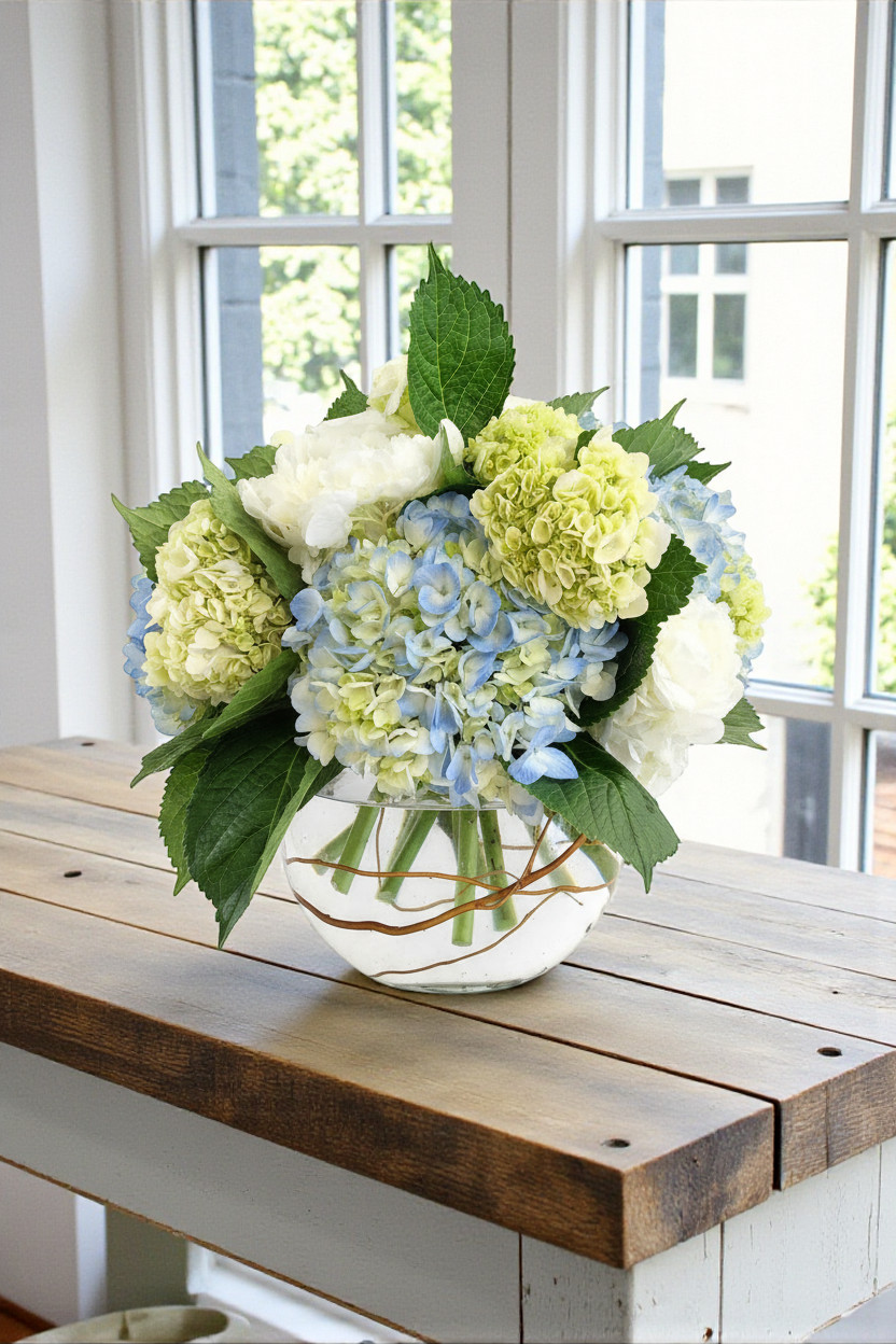 The Severina arrangement is the epitome of floral elegance. Featuring a beautiful blend of hydrangeas and roses, this bouquet elevates your surroundings with its delicate petals and vibrant colors. It’s thoughtfully curated to bring a sense of harmony and sophistication to your home or office space.
