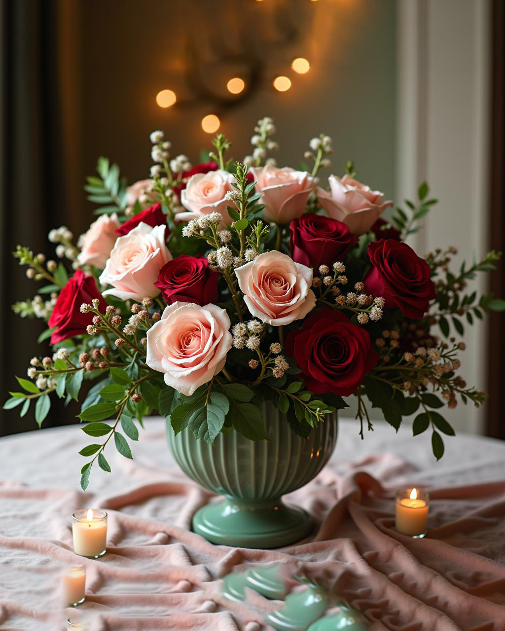 Our commitment to quality ensures that each arrangement is crafted with the freshest flowers sourced from trusted growers. The red and pink roses are handpicked for their beauty and longevity, so you can enjoy their splendor through the holiday season. Designed with care, the Winter Jewels arrangement not only looks stunning but also radiates the fragrance of fresh blooms, enhancing the celebratory feel in your home.